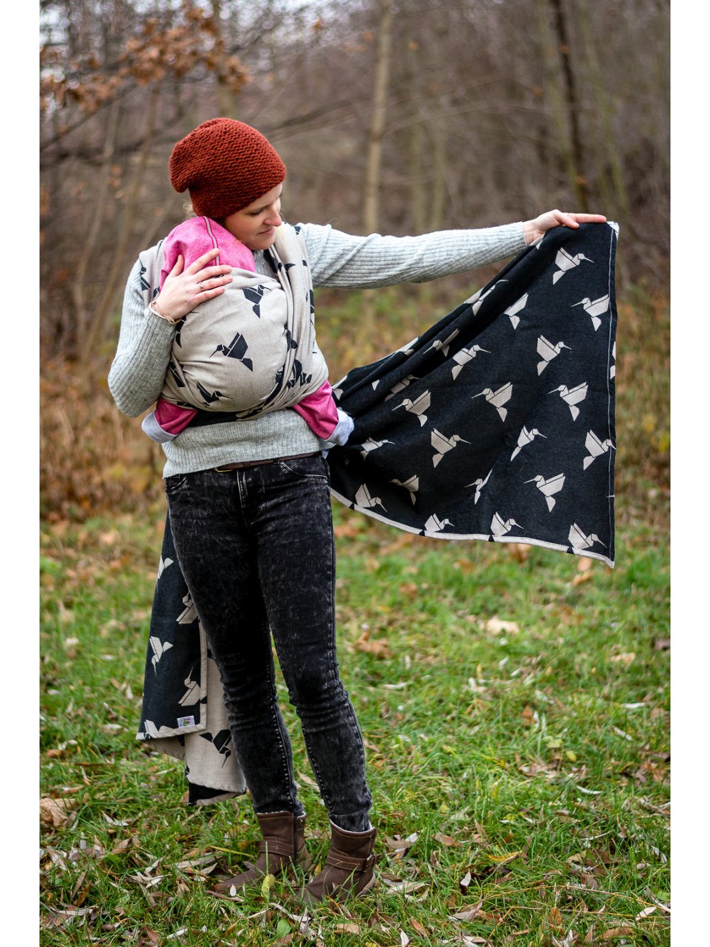 Univerzální šátek vhodný po celé nosící období. Šátek je oboustranný a má zkosené cípy pro jednodušší vázání.